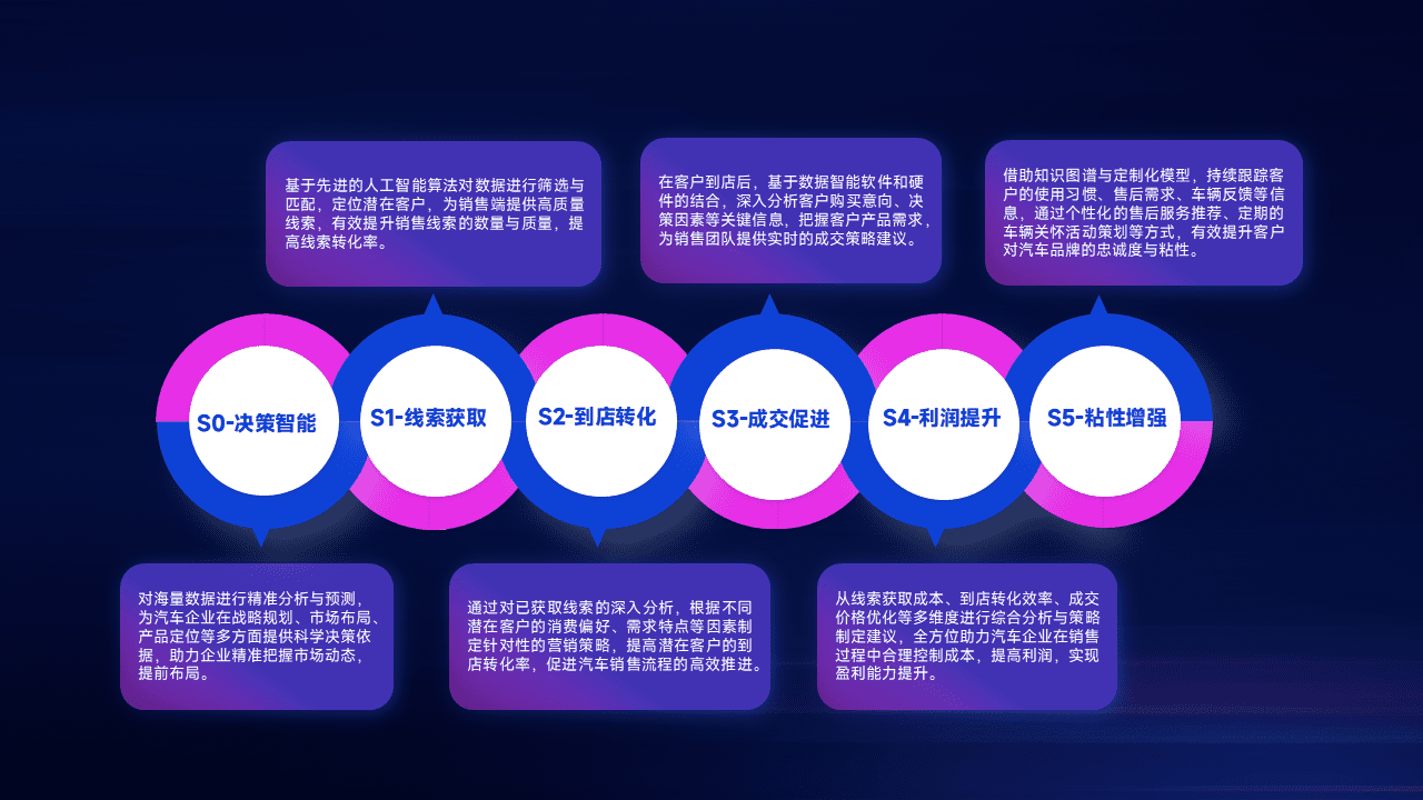 通过拓宽潜在客户来源、、优化线索分配并提高到店转化率,,以增强销售效率。。。。同时,,利用线索数据不断优化分析模型,,,,有效提升转化率,,扩大营销影响力。。